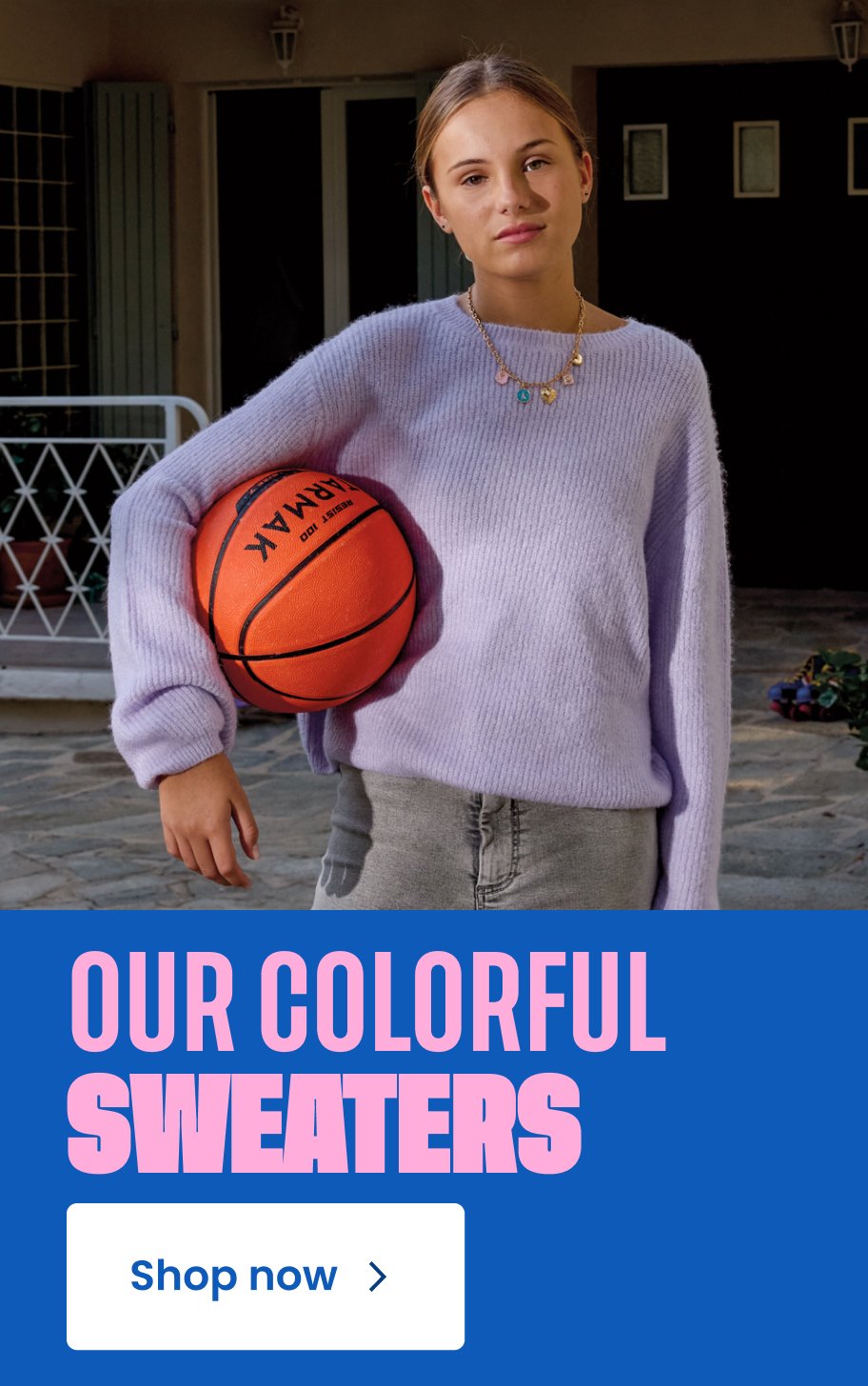 Loose-fitting blue wool sweater for girls