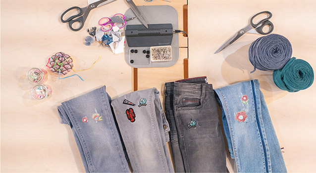 From crawling for miles, diving to catch a ball, falling off a bike or climbing trees, our kids' jeans live through a thousand adventures! And sometimes their favourite jeans get a hole in the knee. Before getting rid of them for good or cutting them into shorts (which in itself is an idea!), discover a simple tutorial by Caroline from the "Maison des Makers" to give jeans with holes in them a second chance, and transform them into "Monster Jeans".